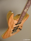 桜材は音の伝搬速度が早く、指板材のパープルハートと同様、ミッドレンジに特徴のあるサウンドですが、ボディバックにアッシュ材を組合わせる事で、高音域がブレンドされており、トータルバランスに優れたクリアで柔らか目の絶妙なトーン、扱い易いサウンドです。