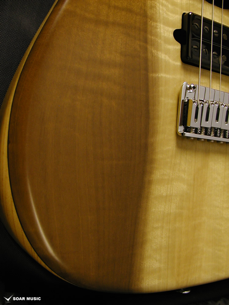 杢目を際立たせる為、ピックガードレスの仕様にカスタムされています。