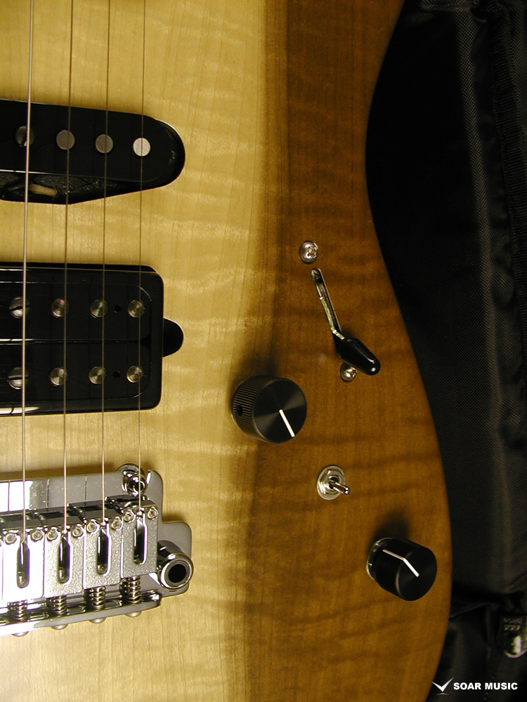 1ボリューム、1トーン、5ウェイ・ピックアッセレクターにコイルタップスイッチを搭載。