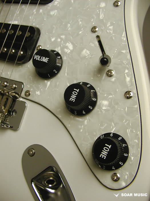 上位モデルであるハンドメイドシリーズのG-STUDIOを基に製作されており、リアPUにハムバッキングを搭載する事で、よりパワフルなサウンドを得られる他、ブレンダーの搭載により、リアピックアップの出力をシングル〜ハムへ無段階で調整が可能です。通常のシングルコイルPUよりも更にパワーのあるサウンドをお求めの方にお奨めです。