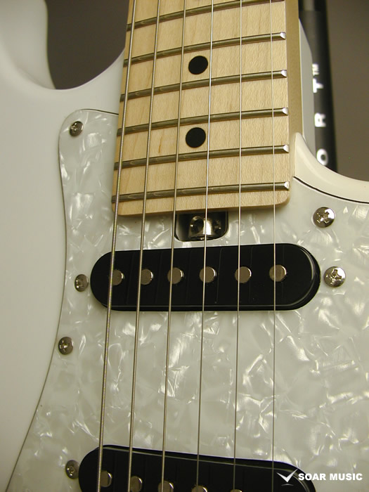 やや小ぶりなボディシェイプで取り回し易く、モダンな印象を与えます。また、フロント、センターピックアップではシングルコイルらしい繊細なサウンド、リアピックアップではハードなサウンドにも対応できる中低音域に重点を置いた太いサウンドを出力します。