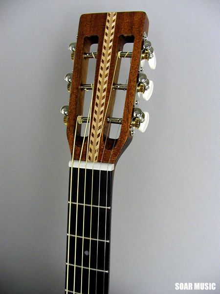 小ぶりで扱い易いニューヨーカースタイルのボディ形状にロープバインディングを施し、ガットギターなどで良く見るスロッテッドヘッドを採用したヘッド部にも装飾を