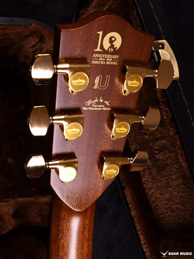 ヘッド裏側には、桜ギター10周年記念モデルであることを証明する限定ロゴがシルクプリントされます。