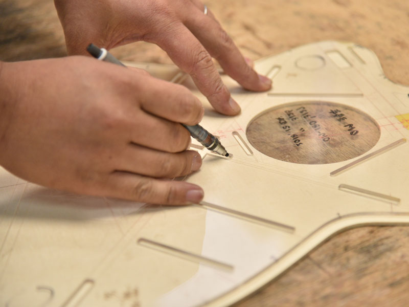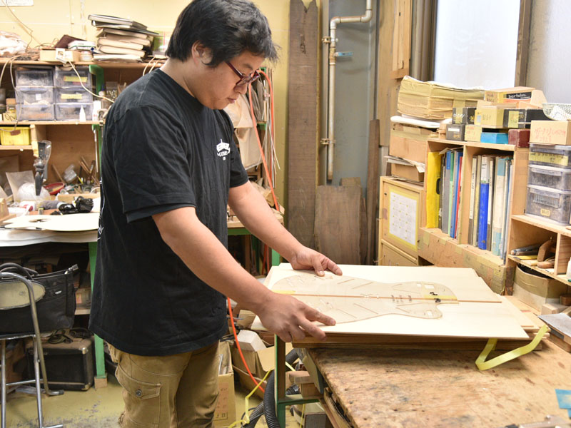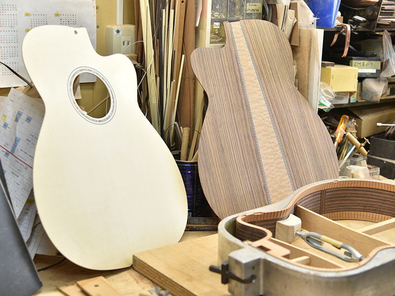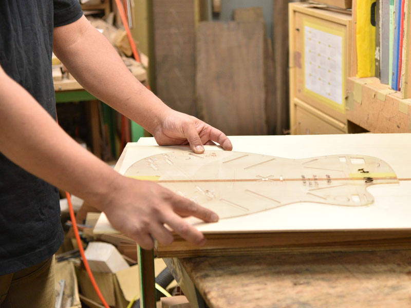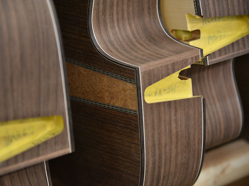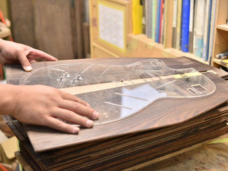 また、34ブレーシングはマホガニーともサウンドの相性が良く、そのことを考慮し安井はボディバックにキルトマホガニーを挟み込む3Pバックにしています。