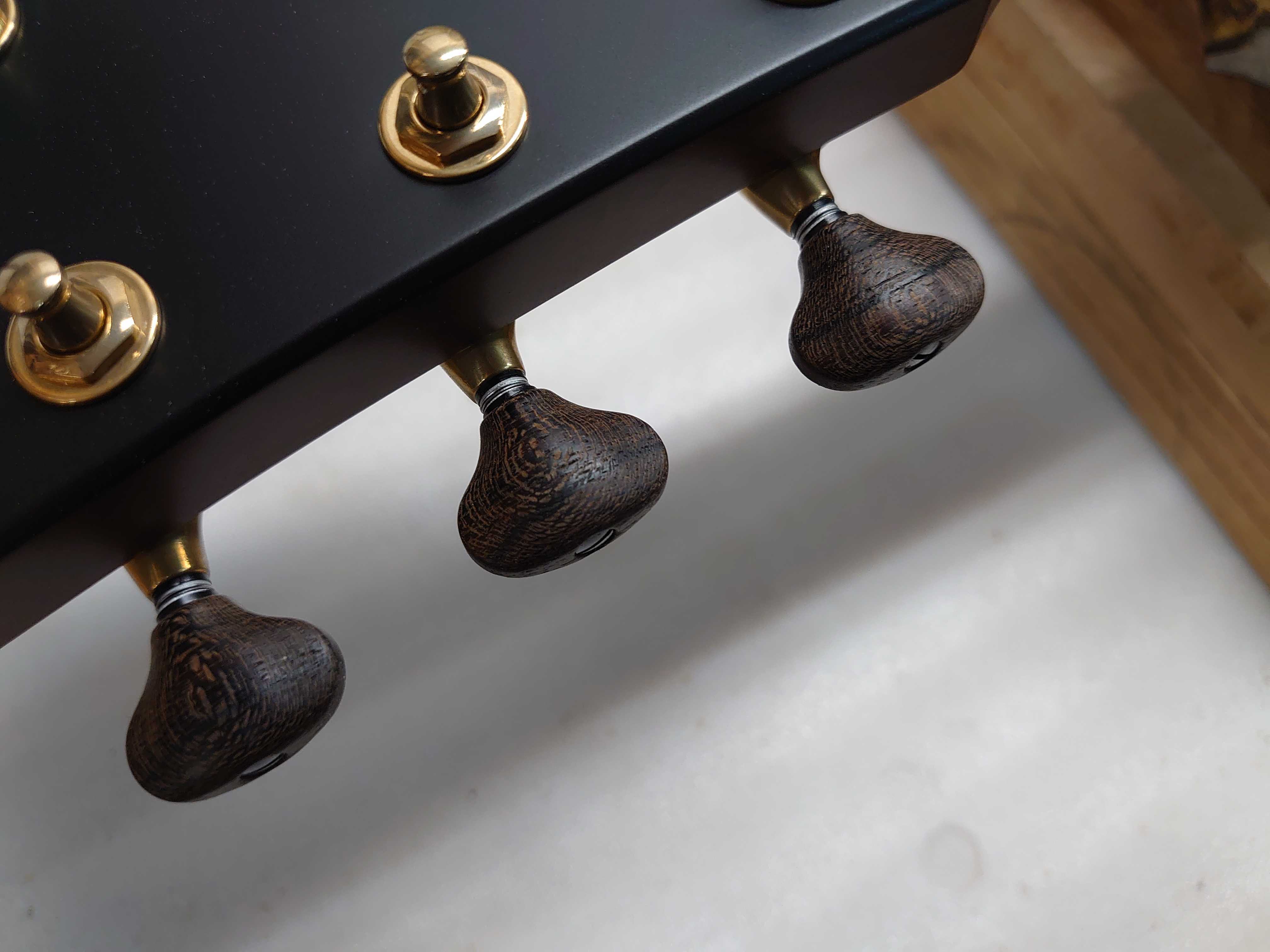 ペグにはGOTOH製のSGV510Z ZL5 XG を採用しており、安井も信頼を置く安定したチューニング精度が魅力のペグです。 その中から新しく登場した「ジリコテ材」を使用した木製のペグボタンの物をセレクトしており、Y500ヘッドともルックス面での相性も良く完成度の高いヘッド周りとなっております。