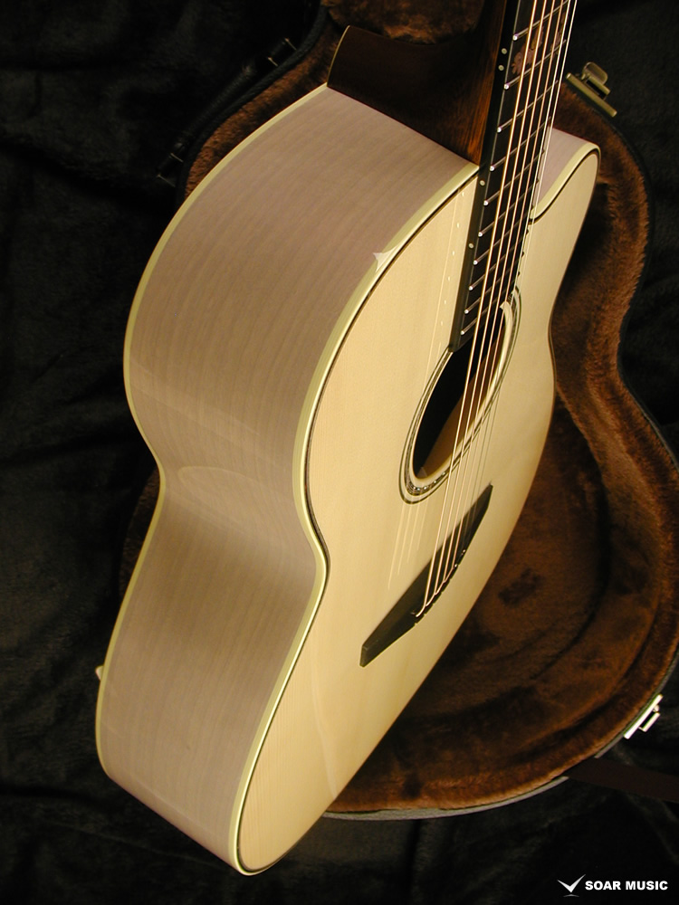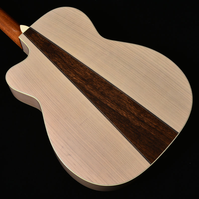 古楽器からクラシックギターなどあらゆる楽器に使用されてきた伝統ある音響材のジャーマンスプルースをトップ材に使用。レスポンスも速くプレイヤーのニュアンスを拾うことにも優れたこの材は、高音域の綺麗な響きと雑味のないサウンドを志向し採用しています。