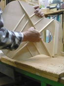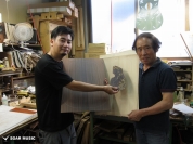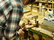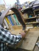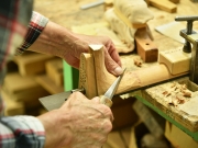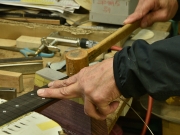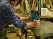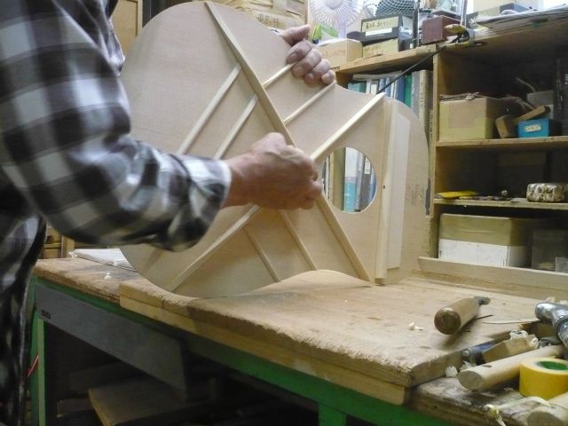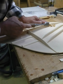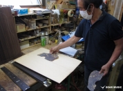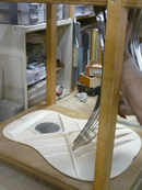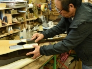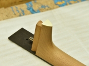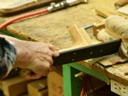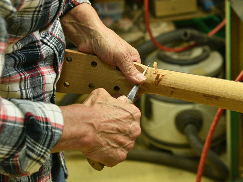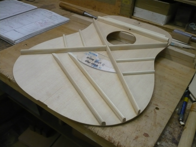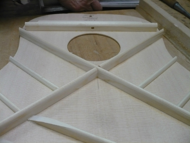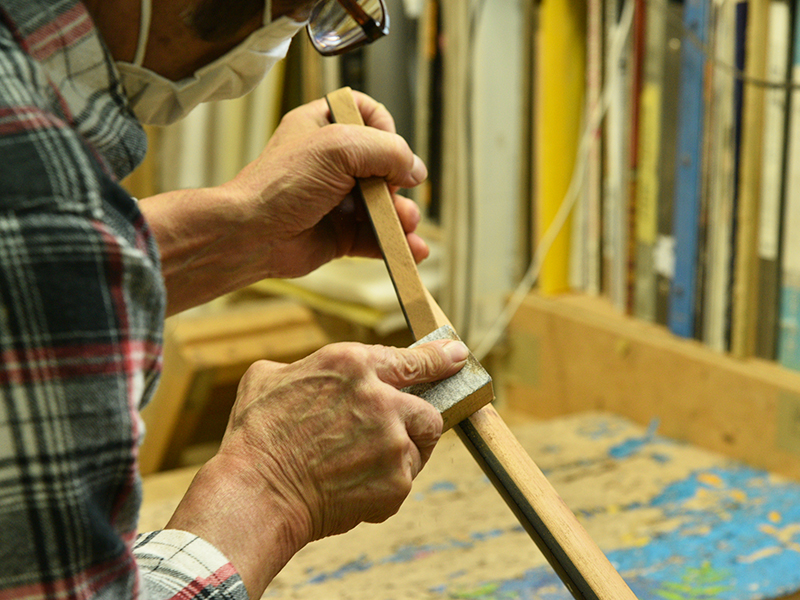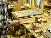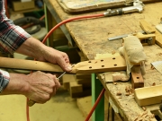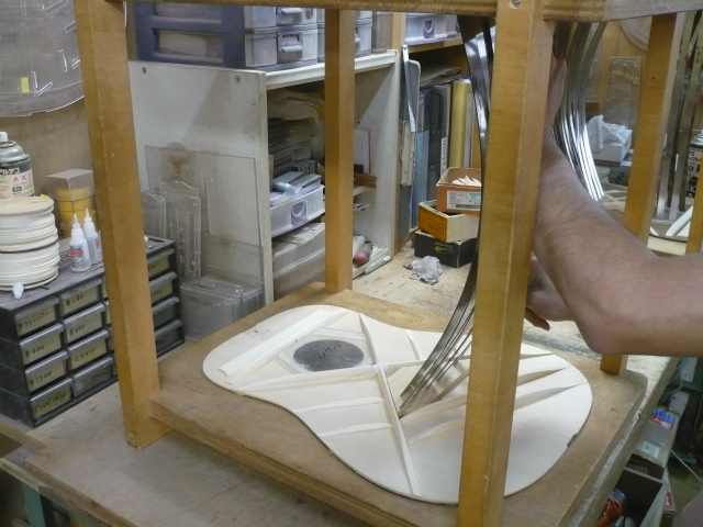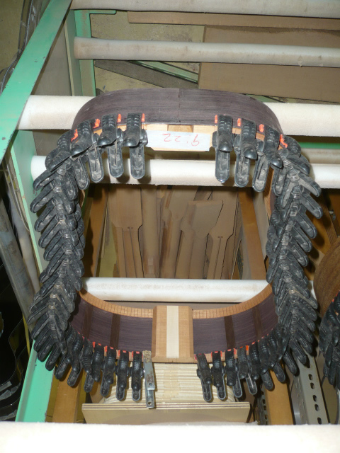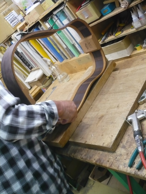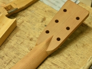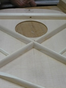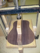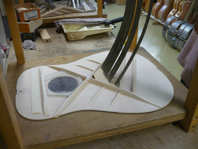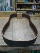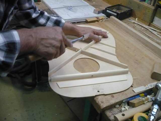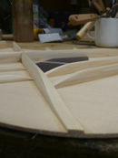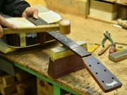 ブレイス構造をセミ・フォワードXとし、採用される駒下補強材について、従来の115で採用される面積よりもサイズが小さいローズウッドプレートを張ります。これにより、さらに豊かな音色と音量の獲得を狙います。