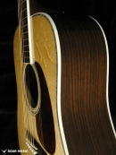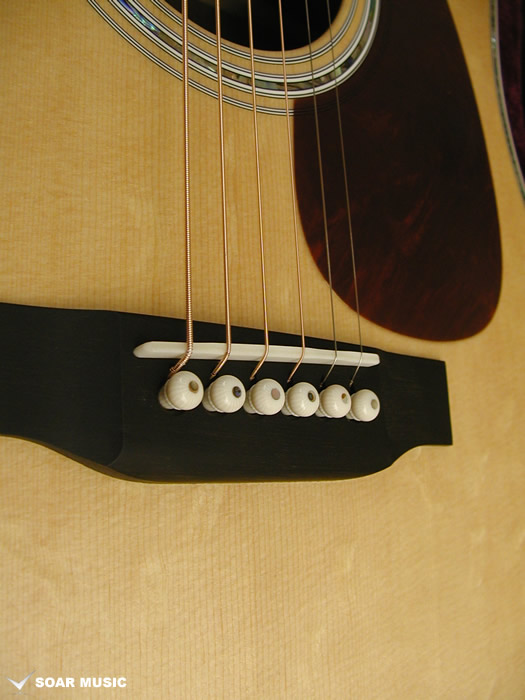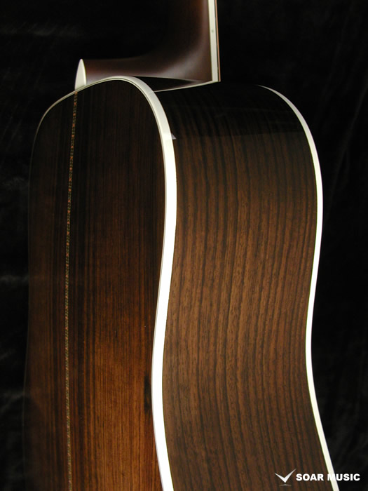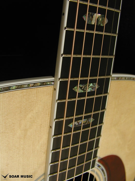 ボディトップには、その独特の杢が熊が爪で引っ掻いた跡の様に見えるところからその名がついた “Bear Clow Sitka Spruce(ベアクロー・シトカスプルース)”のセレクト材を使用。ネックには1ピースのHonduras Mahogany(ホンジュラス・マホガニー)、ボディ内部のブレイシングにはAdirondack Spruce (アディロンダック・スプルース)を使用、ヘッドトップ材にマダガスカル・ローズウッドを配するなど、6本限定ならではの材に拘った豪華な仕様も魅力の一つです。