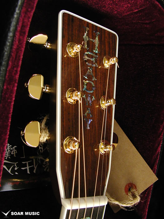 こちらのギターは現地で直接機体を確認し、入荷させていただきました。また、ASKA Team Build Series のチーフビルダーである安井氏にお話を伺う事ができました。HD-141BC のボディトップに使用されている“ベアクロー・シトカスプルース”について、 「複雑な木質となりますが、統計的にギター材の質として共振性は勿論、強度、バランス面で優れている材が多く見受けられ、これがサウンドや楽器としてのクオリティにも深く影響している。」との事でした。勿論、その中でも良材をセレクトした限定6本となり、杢による独特の存在感だけではなく、材と毎日向き合うビルダーの知識・経験からくる、しっかりとした裏付けがあってこその HEADWAY のサウンド、HEADWAY ギターの素晴らしさを再確認できる1本です。 |