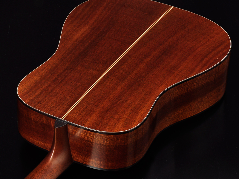 Dシェイプならではの豊かな中低域と音量、マホガニーサイド・バックで明るくやわらかい音色が特徴的なモデルに仕上がりました。パーカッシブなニュアンス、アタック感が印象に残るサウンドで弾き語りでも程よく馴染む音色です。