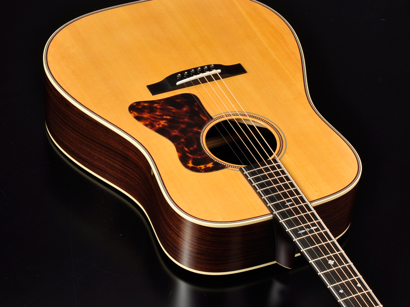 Dシェイプならではの豊かな中低域と音量、ローズウッドの煌びやかな倍音が心地良いモデル。ガツンと弾いてそれに応えてくれるような骨太な弾き心地が特徴的です。ヘッドインレイデザインやヘリンボーンなどの装飾も上品に仕上がりました。
