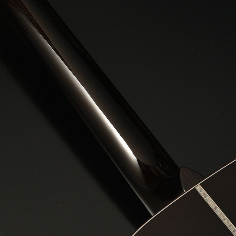 サウンドは「34ブレーシング」に比べると、コーヒーツリーの持つ硬質かつ軽やかな特徴とも相まってバランスよくそれぞれの弦が分離して鳴っている印象があり、弾き込むことでなお一層良く鳴る1本に仕上がっていきます。