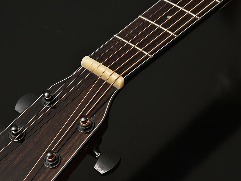 低価格帯のギターに多い、樹脂製のナット・サドルに比べ音の伝達の良い牛骨を使用することで、弦の振動を確実にネック・ボディへ伝えております。