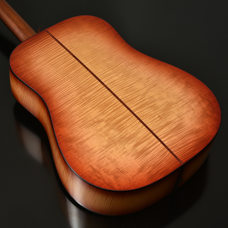 サウンド面は、ボディサイド&バックにカエデ材を使用することで、立ち上がりの良いパリッとした明るい音を響かせます。 カラーリングは秋の夕暮れをイメージした「オータムサンセットバースト(Autumn Sunset Burst)」で仕上げています。