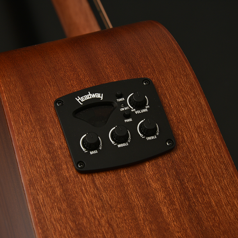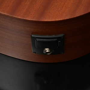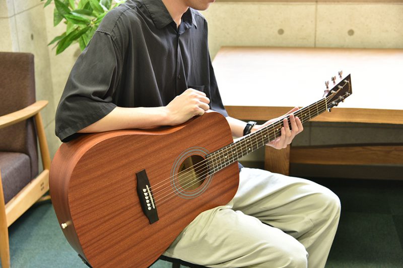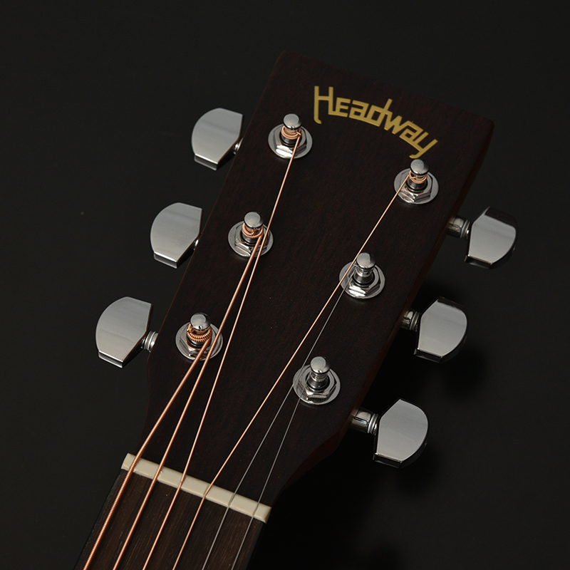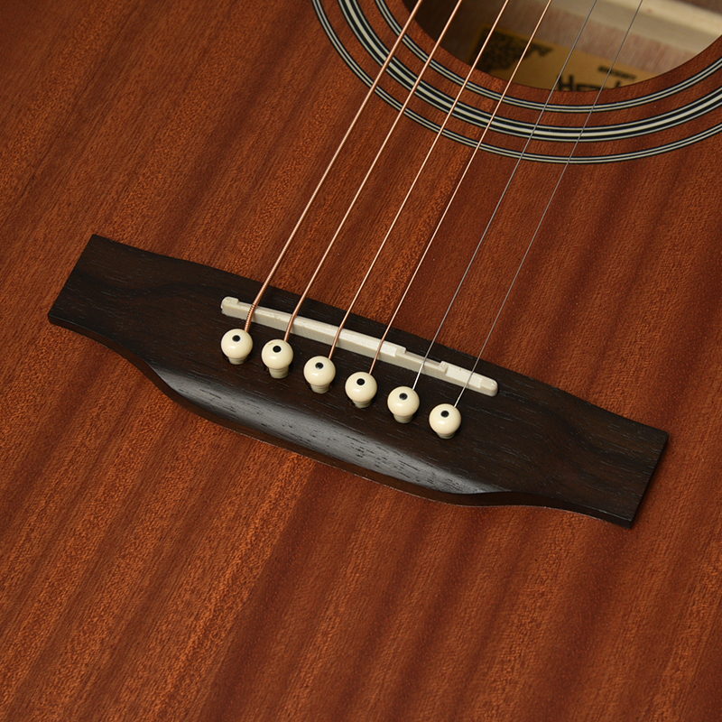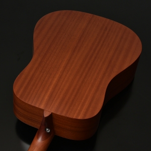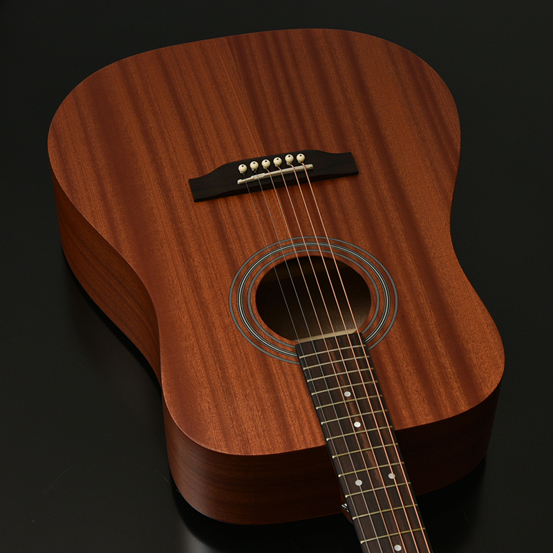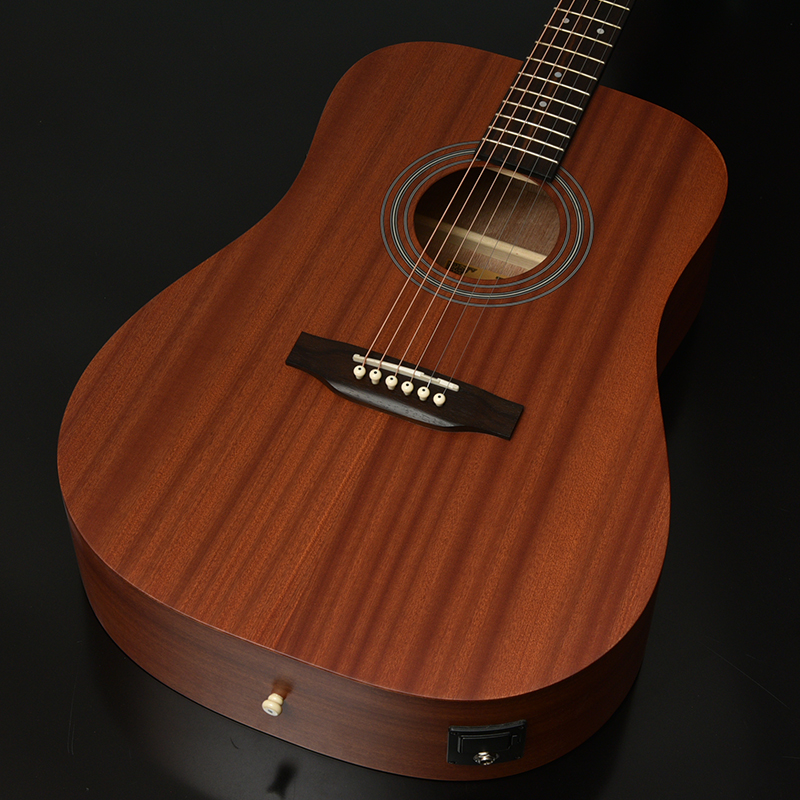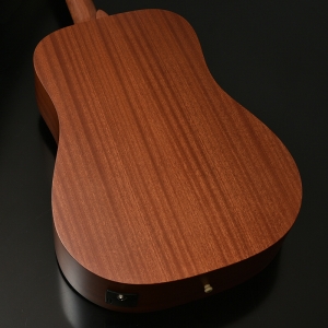 ボディ材にはサペリ合板を採用し、サペリが持つ中音域に特徴のある柔らかいサウンドが特徴です。その柔らかいサウンドから弾き語り等様々なシーンでの活躍が期待されます。大きなボディが特徴のこのHDモデルでは、ふくよかでボリュームのある鳴りが生み出されます。