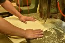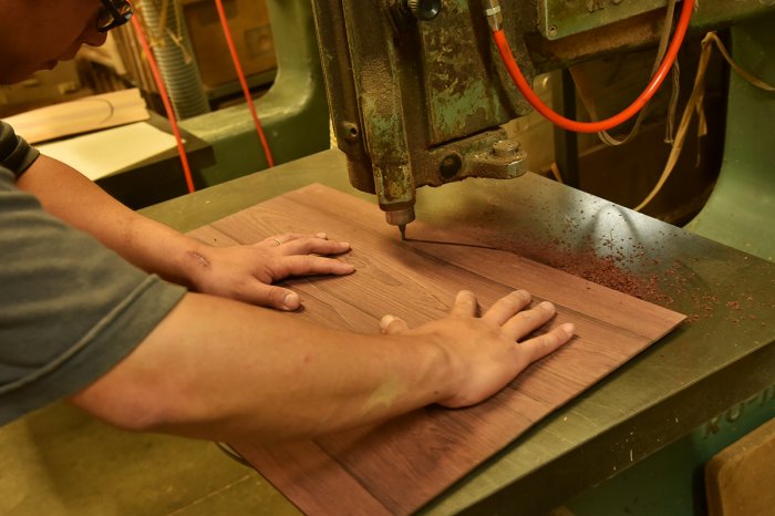 接ぎ継ぎが終わり、ピンルーターで加工している風景です。