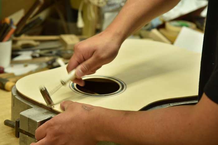 安井雅人氏によるアコースティックギター製作が開始されました。
