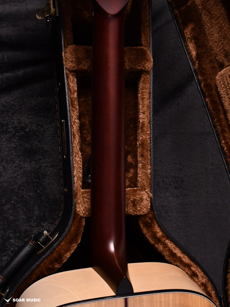 Headwayマスタービルダーの百瀬恭夫が1934年製のビンテージギターのブレーシングを研究し、独自に発展させたブレーシングを継承。Xのクロス位置がサウンドホールに近いセミフォワードシフトで新品時より低音の反応がよく、ボリュームのある鳴りを持ちます。フォワードシフトよりも5mmほどブリッジ寄りになっていることにより、トップ板の安定性も考慮された設計が行われています。