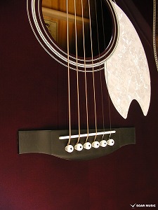 サイド&バックには希少な桜材を使用し、程よい硬質さと力強いアタック感で芯のある音色を生み出し、桜特有の甘みのある中音域が加わることで弾き語りはもちろんのこと、ソロスタイルなどオールラウンドに使用することが出来ます。