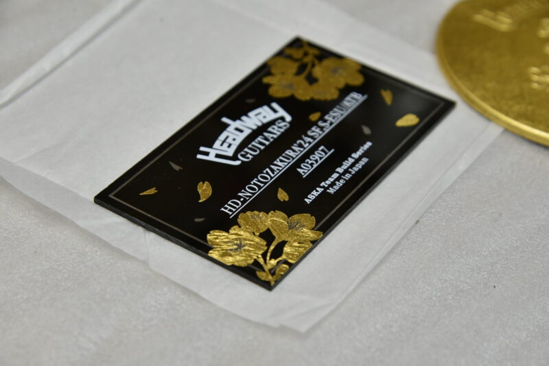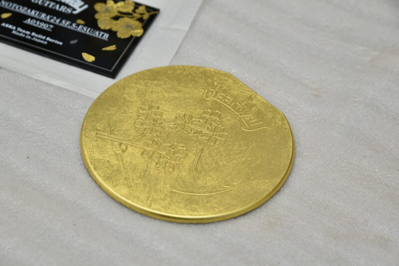 サウンドホールカバーでは全面を金箔で覆い、凹凸にて桜を表現する豪華絢爛な仕様を採用しており、そのままでも飾ることのできる本物の金箔ならではの輝きがあります。