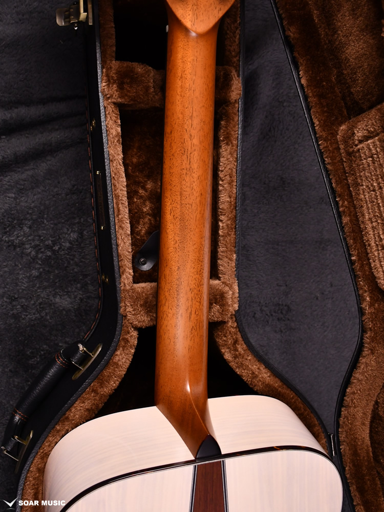 サイドバック材には山桜(ヤマザクラ)を採用。非常に硬質な特徴がありローミッドにピークを持ちつつも、桜材特有の甘いトーンを奏でます。ボディバックのセンター部分には楓を挟み込みことで、楓特有のキレのある歯切れの良さがサウンドに加わります。