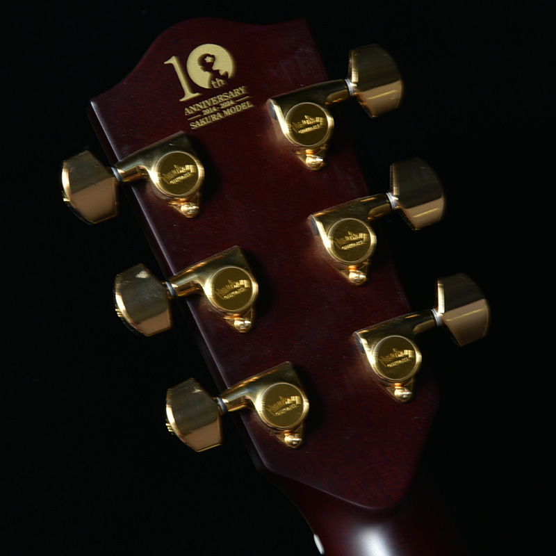 多くのユーザーの皆様に支えられて10周年を迎えた桜ギターへの思いを込めて、ヘッドには縁起を担ぐ存在である「鶴」のインレイをデザインしました。鶴は渡り鳥であるという側面も併せ持っており、日本のみならず、国境を越えて世界中で愛されるギターになって欲しいという願いが込められています。