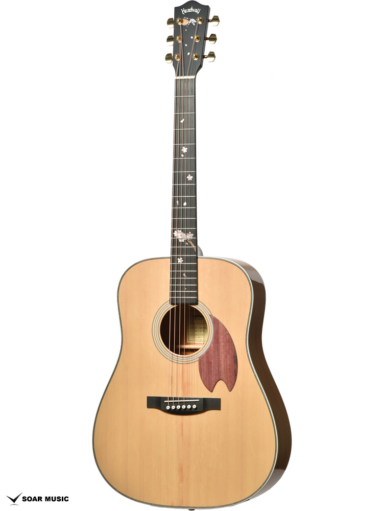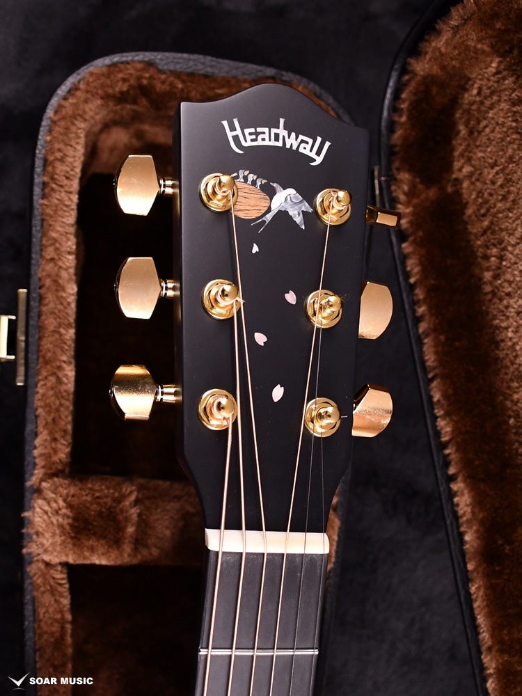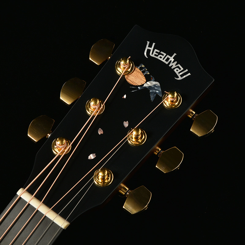 春の渡り鳥として日本人にとってなじみの深いツバメをデザインのモチーフに選びました。Headwayともゆかりのある鳥であり、マスタービルダーの故・百瀬恭夫は毎年春になると工房にやってくるツバメを楽しみにしていました。師への想いと、日本の奥ゆかしい風景に焦点を当てたデザインにより、ギター全体を通してストーリーを感じさせる一本です。