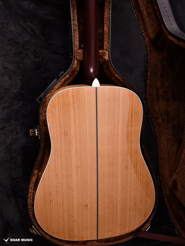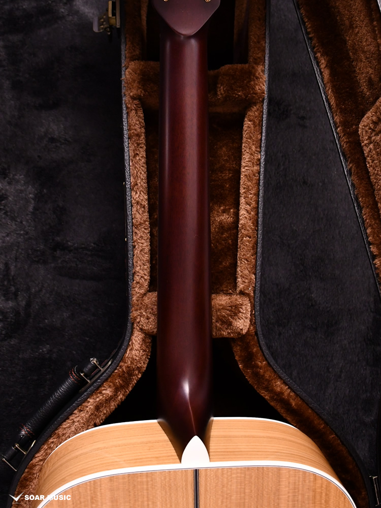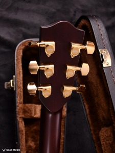 Headwayマスタービルダーの百瀬恭夫が1934年製のビンテージギターのブレーシングを研究し、独自に発展させたブレーシングを継承。Xのクロス位置がサウンドホールに近いセミフォワードシフトで新品時より低音の反応がよく、ボリュームのある鳴りを持ちます。フォワードシフトよりも5mmほどブリッジ寄りなっていることにより、トップ板の安定性も考慮された設計が行われています。