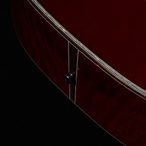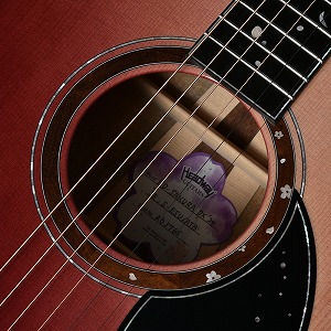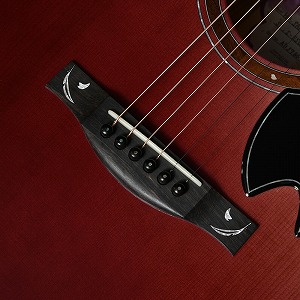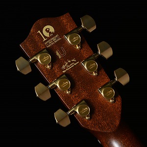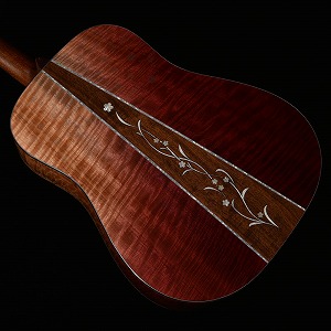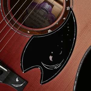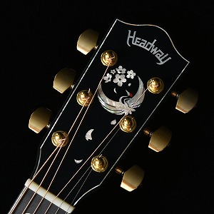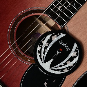 このモデルではヘッドのインレイとサウンドホールカバーに鶴がデザインされていますが、そのデザインは羽で円を描いています。