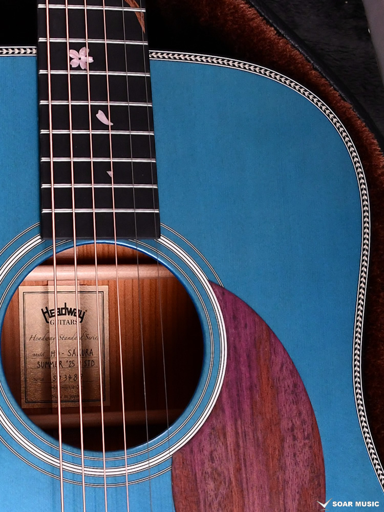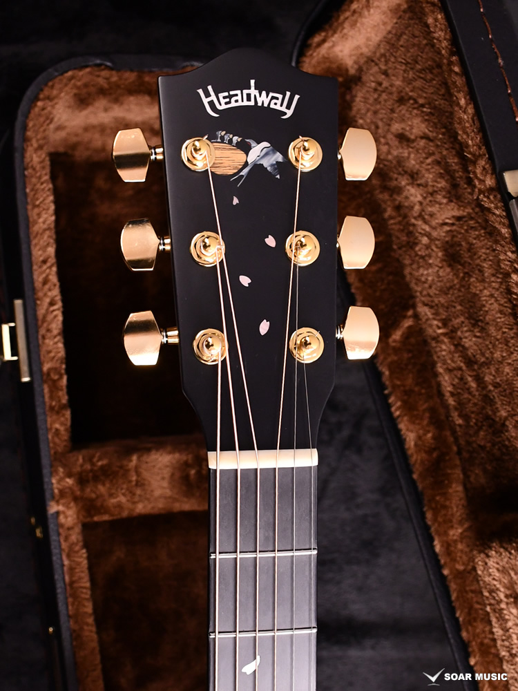 春の渡り鳥として日本人にとってなじみの深いツバメをデザインのモチーフに選びました。Headwayともゆかりのある鳥であり、マスタービルダーの故・百瀬恭夫は毎年春になると工房にやってくるツバメを楽しみにしていました。師への想いと、日本の奥ゆかしい風景に焦点を当てたデザインにより、ギター全体を通してストーリーを感じさせる一本です。