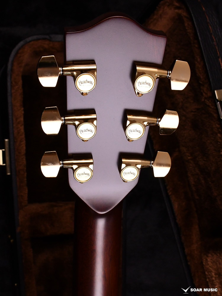 Headwayマスタービルダーの百瀬恭夫が1934年製のビンテージギターのブレーシングを研究し、独自に発展させたブレーシングを継承。Xのクロス位置がサウンドホールに近いセミフォワードシフトで新品時より低音の反応がよく、ボリュームのある鳴りを持ちます。フォワードシフトよりも5mmほどブリッジ寄りなっていることにより、トップ板の安定性も考慮された設計が行われています。