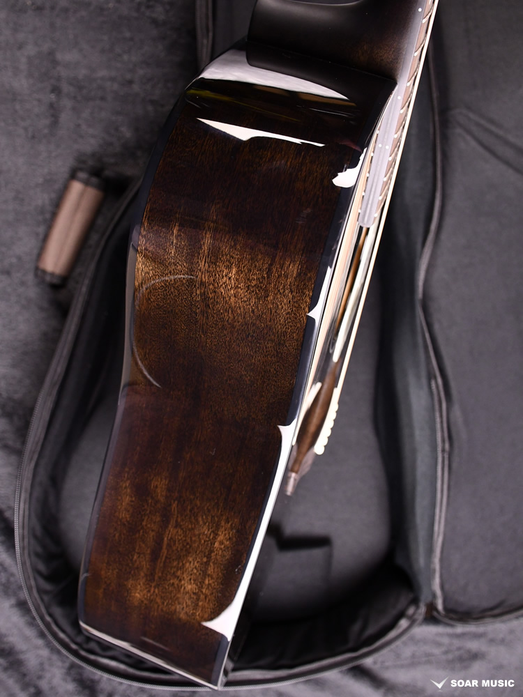 ボディトップはスプルース単板、ボディサイドバックはアフリカンマホガニー単板を使用。オール単板であるため、合板のギターと比べて木材の振動が豊かになり、より本格的なアコーステックサウンドを楽しめます。