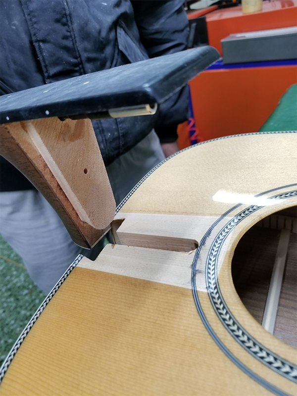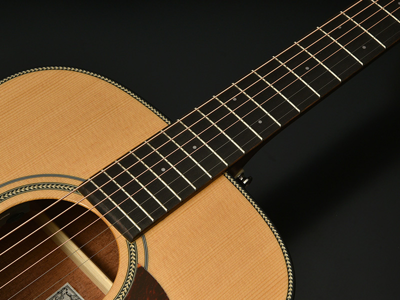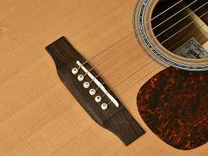 アコースティックギターの演奏で頻繁に使われるローコード。コード変更がスムーズに出来るように、ナットの角を滑らかに処理しました。また同じくサドルの角を滑らかにすることにより、ブリッジミュート時など右手が触れるときの感触も向上しました。