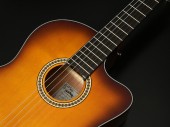 ナット位置で48mmの狭めのネック幅を採用し、弦高も弾きやすさを重視して低めに設定しています。普段アコースティックギターやエレキギターをメインで使用している方でも比較的握りやすく設計されており、ガットギターのサウンドを気軽にお試しいただけます。