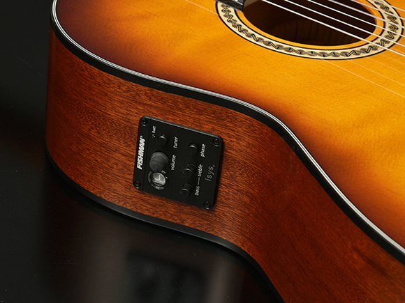 また「Fishiman Isys+プリアンプ&ピックアップ」を搭載しており、アンプ等で出力が可能です。