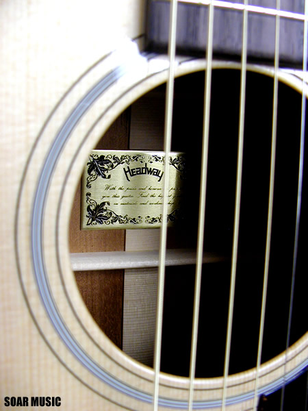 ヘッドウェイ国内工場にてハンドメイドで製作されるアコースティックギターをこの価格で。ボディトップ材に厳選されたシトカ・スプルース単板、サイド&バックにはマホガニー合板を採用。