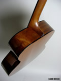 ※近年ラミネート材・合板材に使用される木材は楽器としての音質を重視したものではなく、コストを抑える為に楽器としては適していない安価な木材を使用するのが一般的となってきました。しかし、Headwayではラミネート材の芯材に楽器用として適したメイプル材を使用しています。これにより、通常の単板材では持ち得ないほどの強度を持ち、音質面でもローズウッドには歯切れの良さ、マホガニーには倍音を足す事が可能となりました。 |