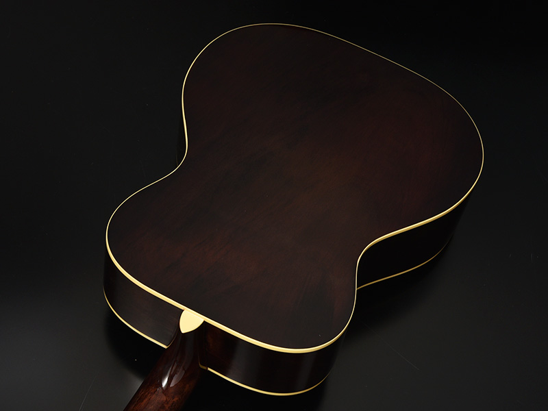 ドレッドノートサイズと同じスケール(弦長)ですが、やや小ぶりなフォークタイプ(OMサイズ)のボディサイズで、レスポンスが良く、低音から高音までバランスの良い鳴りが特徴です。