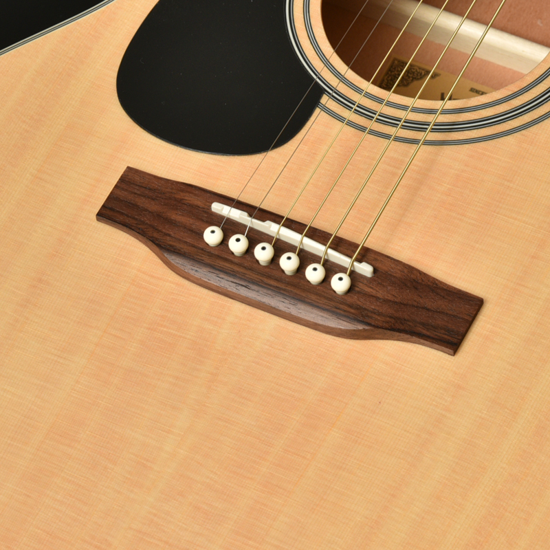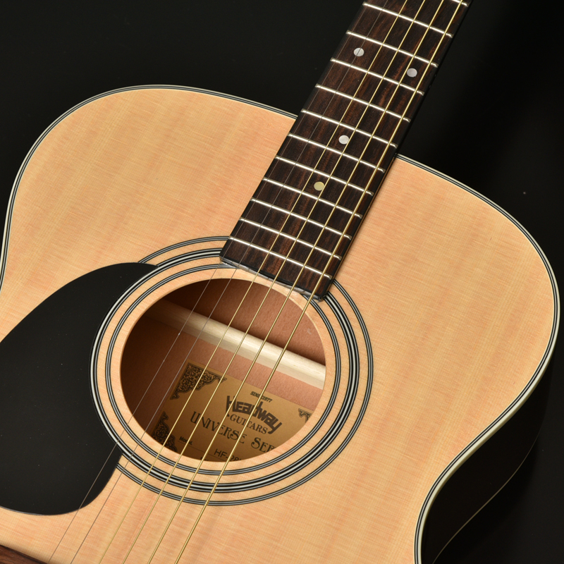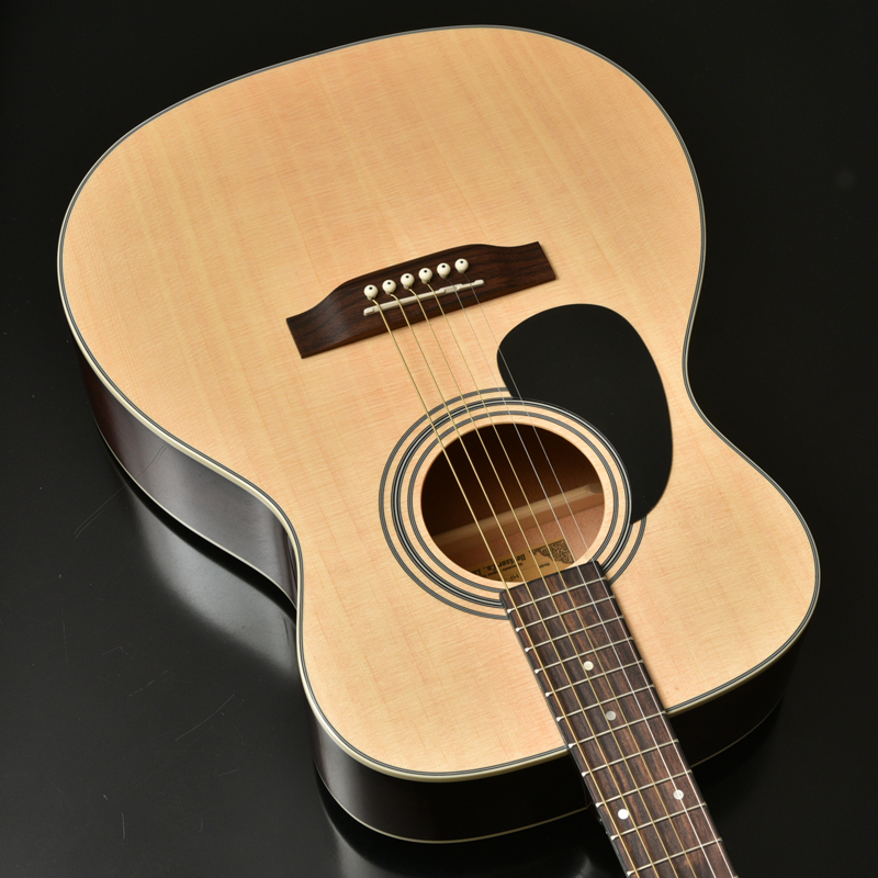 ドレッドノートサイズと同じスケール(弦長)ですが、やや小ぶりなフォークタイプ(OMサイズ)のボディサイズで、レスポンスが良く、低音から高音までバランスの良い鳴りが特徴です。