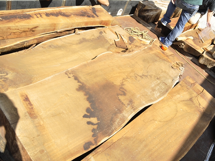 そしてコア材の魅力はその木目にもあります。無垢材のときはやや薄い黄色味がかった色合いですが、塗装することで深みのある褐色に変化します。艶ありのグロスフィニッシュでその木の色や木目を引き立てるように仕上げました。