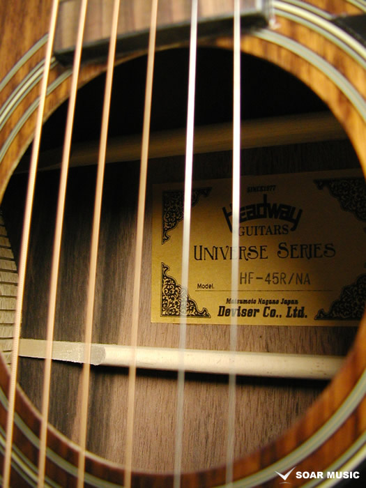 HF-45Rモデルはボディトップ、サイド&バックにローズウッド(合板)を使用した上位モデル。