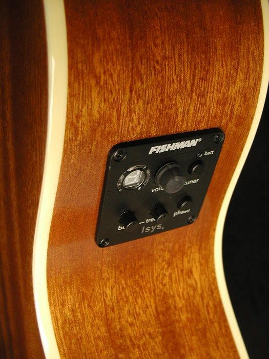 プリアンプにはFISHMAN Isys+(Plus)を搭載しており、ボリュームコントロール、2バンドEQ、フェーズスイッチの他、嬉しいチューナー機能を備えており、生演奏での豊かなサウンドとニーズに合わせてアンプを通しての演奏も可能です。