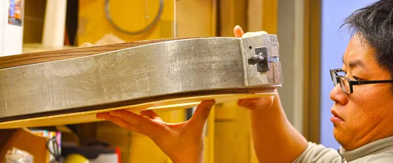 従来のギター作りの常識に囚われずより良いギター造りを行うために常に研究を重ねながら、新しい構造のブレーシングやトラスロッドの仕込みなどにも挑戦しています。