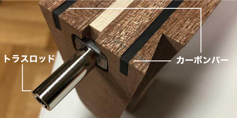 単に薄くするだけではなく、Headwayの製作理念を守る為、ネックには2本のカーボンサポートを入れることで、ネックの堅牢さを維持すると共に高い剛性からネックの振動が即ボディへ伝わりレスポンスの良さにも繋がっています。