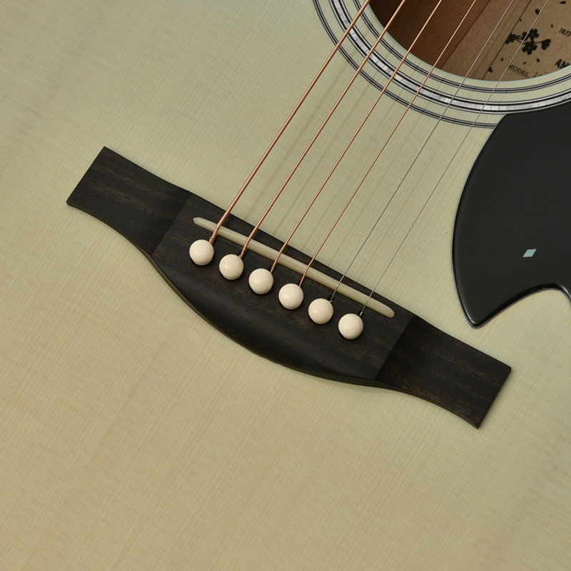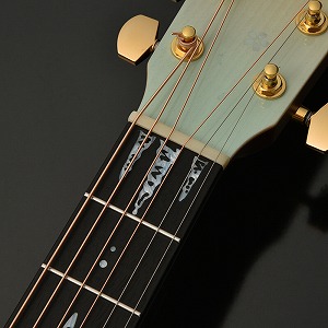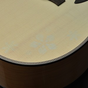 マテリアルは桜モデルのポリシーである「桜材」をサイドバックに、Aska Team Build Seriesを担当する職人による選定がなされた「シトカスプルース」をボディトップ、良質な「アフリカンマホガニー」1ピースのネック、目の詰まった「エボニー」指板と充実のスペックで構成されております。