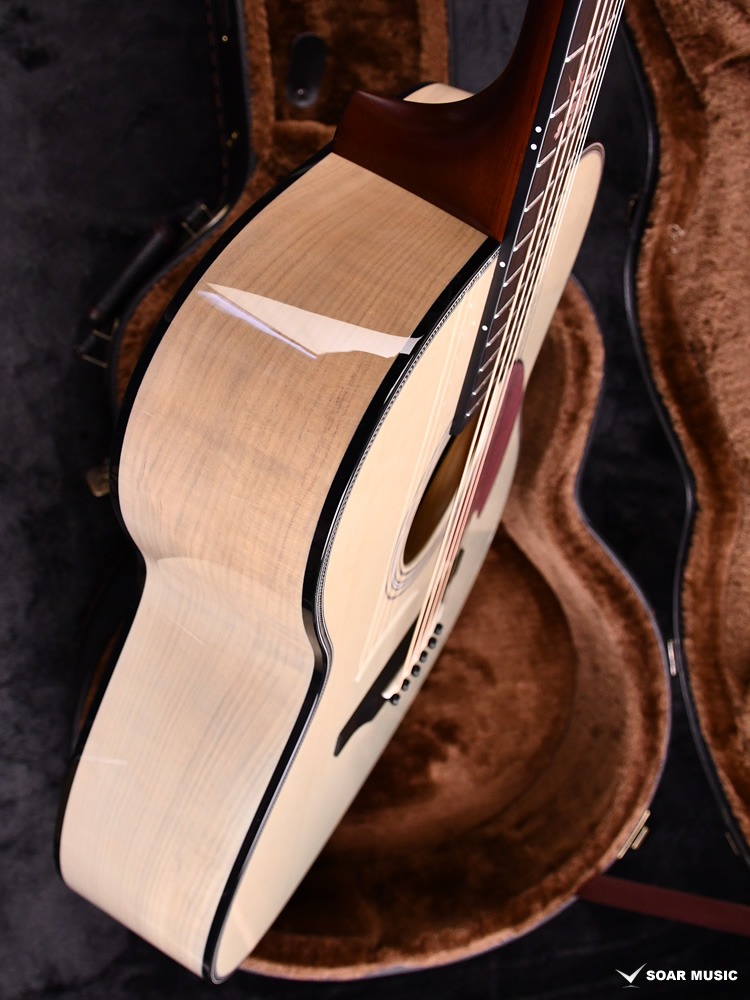 Headwayマスタービルダーの百瀬恭夫が1934年製のビンテージギターのブレーシングを研究し、独自に発展させたブレーシングを継承。Xのクロス位置がサウンドホールに近いセミフォワードシフトで新品時より低音の反応がよく、ボリュームのある鳴りを持ちます。フォワードシフトよりも5mmほどブリッジ寄りになっていることにより、トップ板の安定性も考慮された設計が行われています。