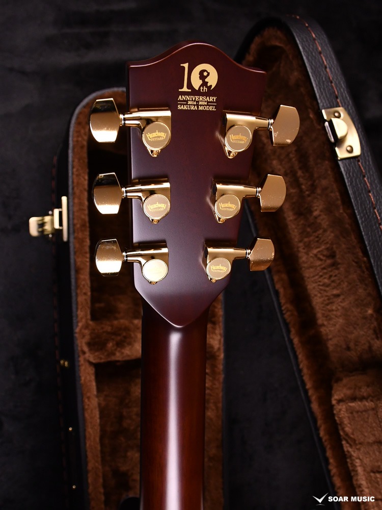 多くのユーザーの皆様に支えられて10周年を迎えた桜ギターへの思いを込めて、ヘッドには縁起を担ぐ存在である「鶴」のインレイをデザインしました。鶴は渡り鳥であるという側面も併せ持っており、日本のみならず、国境を越えて世界中で愛されるギターになって欲しいという願いが込められています。