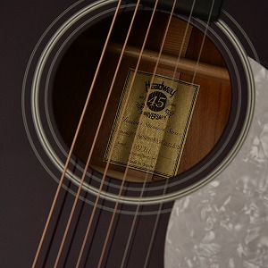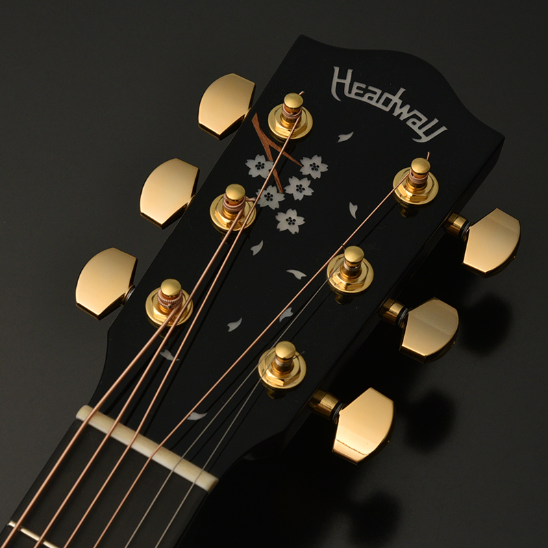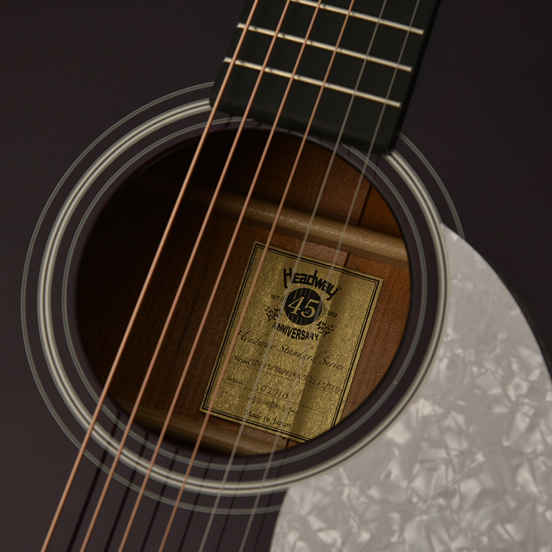 Headway45周年を記念する限定デザインのサウンドホールラベルを使用しております。 高級感のあるゴールドラベルにHeadway45周年ロゴを採用し細部にも拘って製作いたしました。