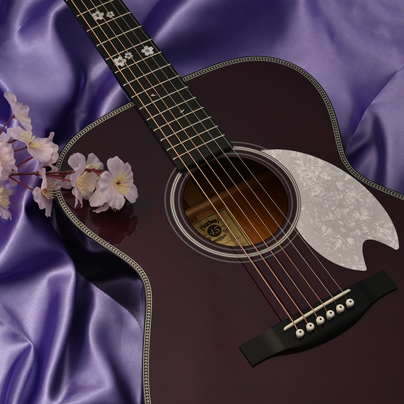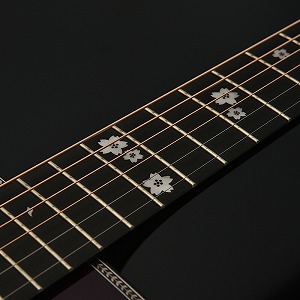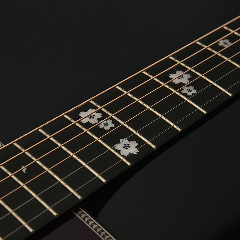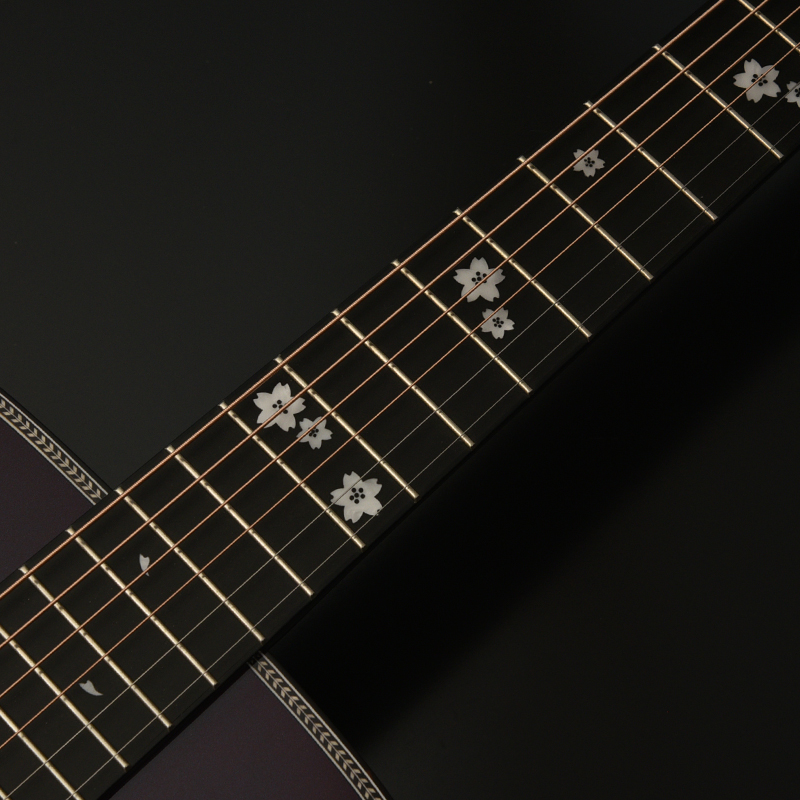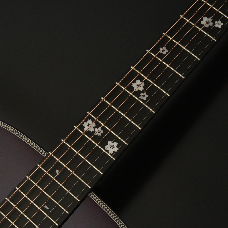 美しく舞う桜の花びらをあしらった指板インレイがこのモデルの美しさを最大限引き立たてます。