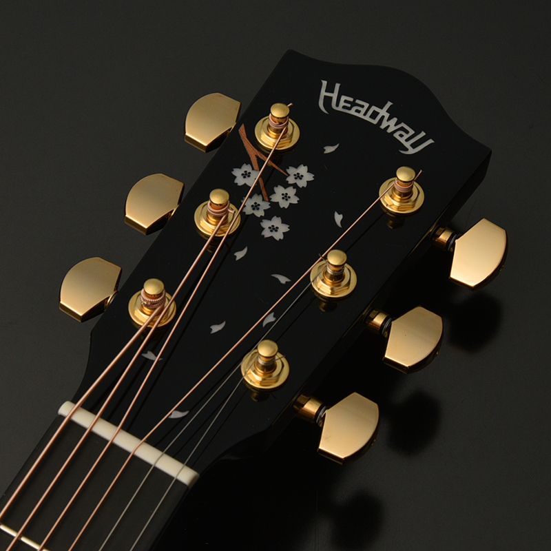 美しい桜の花びらが舞うその可憐で美麗なデザインがブラックの天板を彩ります。GOTOHRSG301のペグを採用することでチューニングの安定性もあり安心して長年弾き込むことができます。